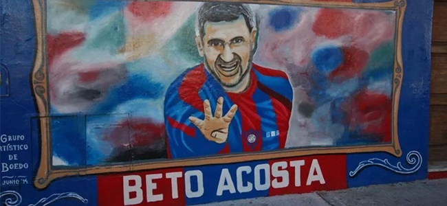 Las calles de Boedo y Parque Chacabuco se embellecen. Se llenan de azul y rojo. El Grupo Artístico abocado a pintar murales en la zona esta vez lo retrató al Beto Acosta, quien resultó ganador de una encuesta sobre qué mural sería el próximo a pintar, y vía Twitter ya pudo ver la ilustración: