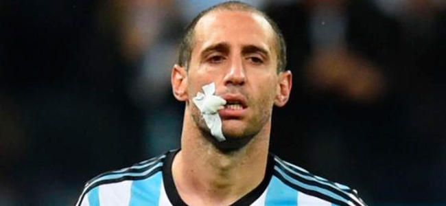 Luego de unos minutos de atención médica, Zabaleta tuvo que jugar con un incómodo vendaje en el labio el resto del suplementario, aguantando la carga naranja con Robben a la cabeza. Varios puntos tuvieron que darle al defensor.