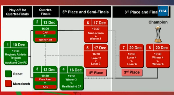 Los cuartos de final de la Copa Mundial de Clubes de la FIFA fueron sorteados esta tarde en Marrakech y le permitieron a San Lorenzo conocer cuáles serán sus potenciales rivales en el certamen.