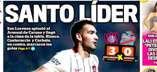 Los matutinos publicaron en su portada el triunfo por 3 a 0 de San Lorenzo de Almagro sobre Arsenal de Sarandí. Mirá las tapas.
