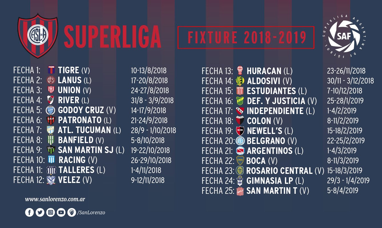 La Superliga 2018/19 está al caer. El fixture ya fue oficializado y publicado, pero restan saber los días y horarios en los que se desarrollarán los encuentros. El primer partido de San Lorenzo será en Victoria ante Tigre, y se bajaran dos opciones en el calendario.