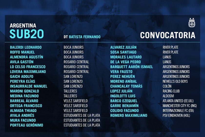 Con la llegada del Bocha Batista a la dirección técnica, Manuel Insaurralde, Adolfo Gaich y Elias Pereyra fueron convocados para integrar la nómina de preselección, de jugadores que jugarán el próximo Torneo Sudamericano en Enero que se disputará en Chile.