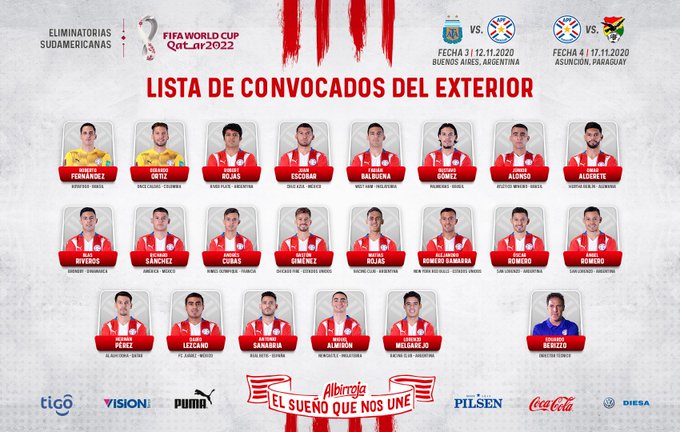En simultáneo con la Copa De la Liga Profesional, Paraguay jugará la 3era y 4ta fechas de las Eliminatorias frente a Argentina y Bolivia, el jueves 12 de noviembre y martes 17, respectivamente, justo en medio de la fecha en que San Lorenzo visitará a Aldosivi en Mar del Plata, el fin de semana del 13 de este mes.