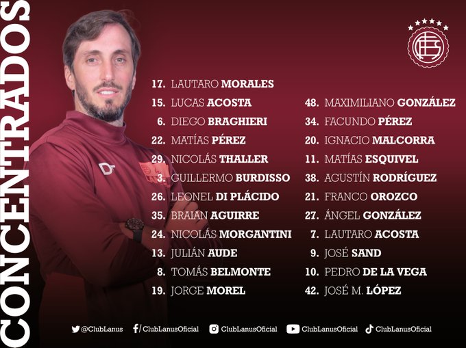 A su vez, en el banco de los suplentes y por primera vez tendrá al joven delantero de la Reserva Eduardo “Tucu” García, quien a sus 20 años integró la nómina. Sebastián Torrico; Andres Herrera, Gino Peruzzi, Cristian Zapata, Francisco Flores, Nicolás Fernández Mercau; Alexis Sabella, Yeison Gordillo, Néstor Ortigoza; Uvita Fernández y Nahuel Barrios, el probable equipo azulgrana de Paolo Montero.