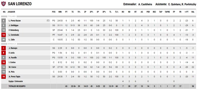Formacion y estadisticas de San Lorenzo ( Gentileza de www.basquetplus.com)