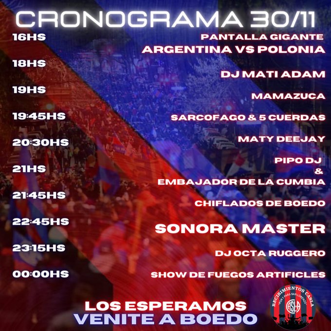 Sin embargo, de cara a lo que viene, comenzaron a planificar el evento del dia del hincha, por lo que explicaron que “San Lorenzo nunca va a ser una S.A. El hincha no olvida y necesitamos hacer un gran festejo. Como novedad, queremos contarles que El 30-11 arrancamos a las 16 hs con el partido de la Selección. Pero el show arranca a las 19 hs".