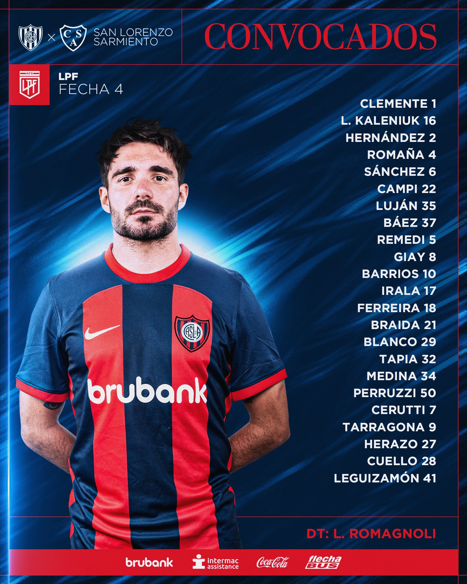 No son todas buenas noticias para Leandro Romagnoli debido a que no podrá contar con dos habituales titulares y un suplente. El conjunto azulgrana no podrá contar con sus habituales capitanes debido a que Adam Bareiro debió presentarse a entrenar con la Selección de Paraguay, mientras que Facundo Altamirano terminó el partido con una fatiga muscula en el isquiotibial derecho y por precaución quedó desafectado. Una situación es la de Gastón Gómez, quién todavía no se recuperó de su lesión y no estará entre los citados.