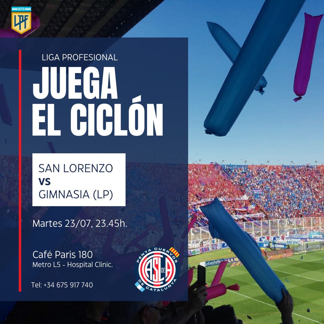 El próximo encuentro, donde CASLA estará visitando a Gimnasia y Esgrima La Plata, por la séptima jornada de la Liga Profesional, la peña de Barcelona se juntará en el Café Paris 180, el martes 23 de julio, desde las 23:45 horas para alentar un nuevo partido a los de Boedo.