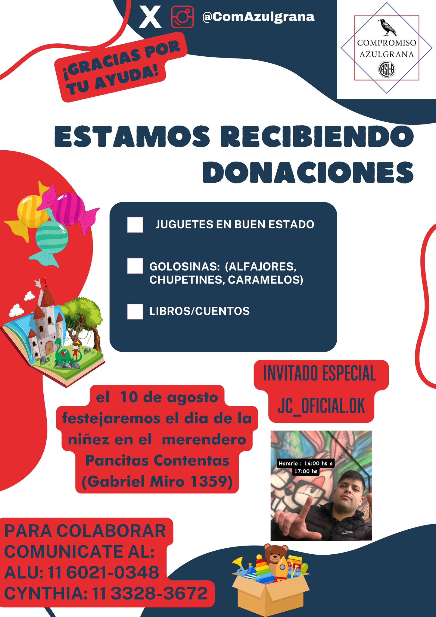 En mes de la niñez, el grupo de acción social “Compromiso Azulgrana” se encuentra recibiendo donaciones de juguetes, golosinas, libros y cuentos para celebrar la jornada que se estará llevando a cabo en CASLA. Además, contará con la participación del cantante “J.C.” para un show musical.