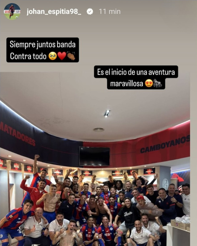 A través de una historia de instagram, el colombiano subió la foto grupal que se sacó el plantel luego de haber obtenido la clasificación a los playoffs, y lo acompañó con un esperanzador mensaje: "Siempre juntos banda, contra todo. Es el inicio de una aventura maravillosa".