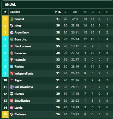 En cuanto a la clasificación a Copa Libertadores, los azulgranas siguen 3 puntos debajo de Argentinos Juniors, equipo que hoy sería el último que accedería por tabla anual al ubicarse en el tercer puesto. Para volver a la máxima competencia internacional a nivel clubes de Sudamérica, CASLA tiene dos opciones: obtener el título del torneo Clausura o finalizar entre los tres primeros de la tabla general.