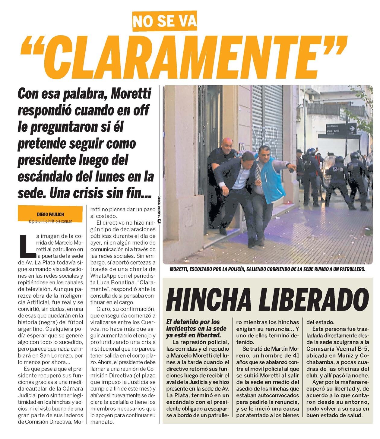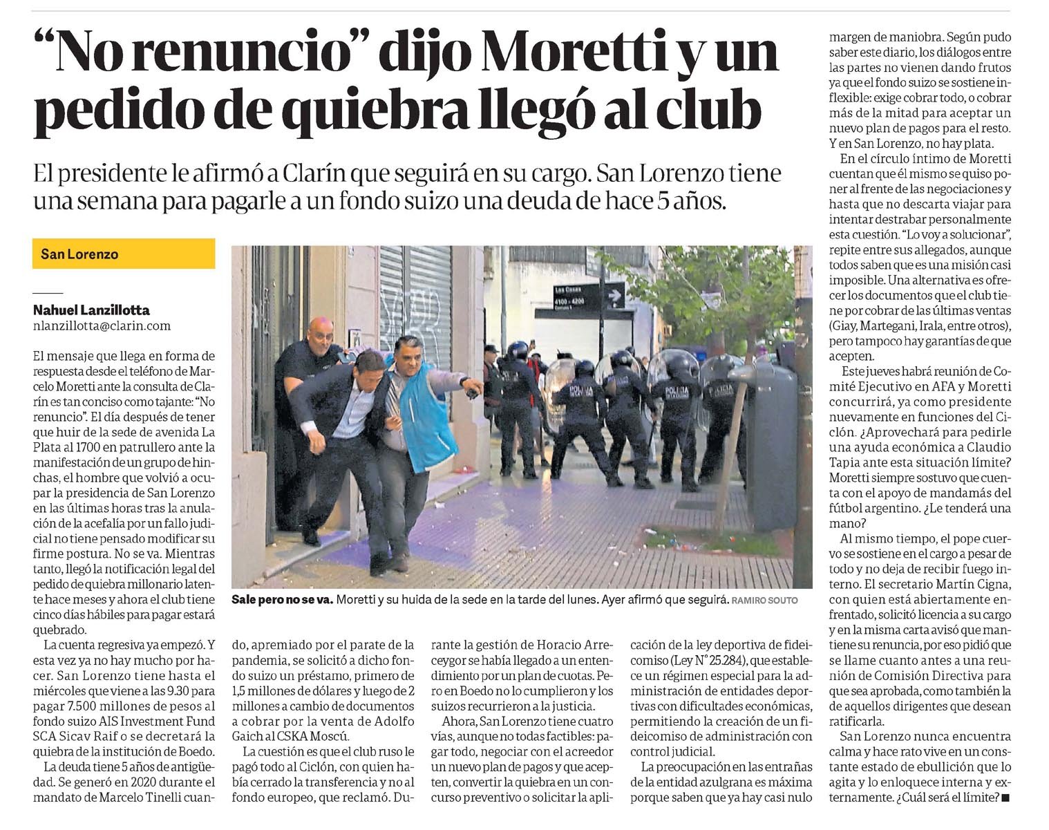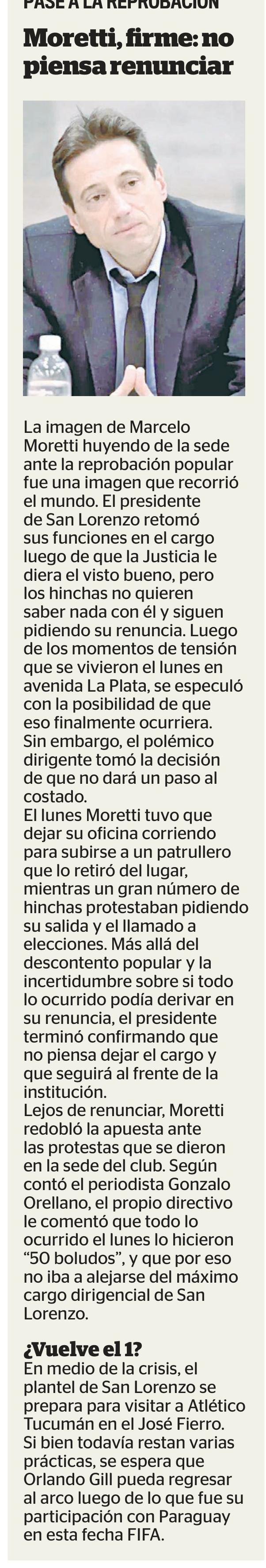 El caso Moretti es eco en los medios gráficos