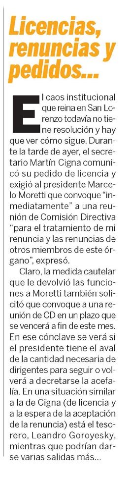 Te acercamos para que puedas leer todo lo que dicen los medios gráficos del día de hoy sobre San Lorenzo de Almagro.