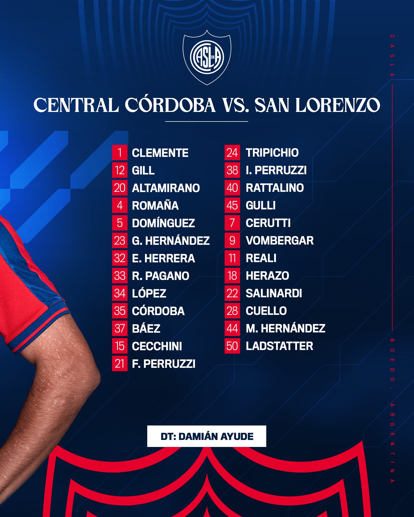 La única baja que tendrá CASLA para este encuentro será la de Manuel Insaurralde. El mediocampista sufrió una distensión en el bíceps femoral izquierdo, que lo dejó afuera de la lista de concentrados.
