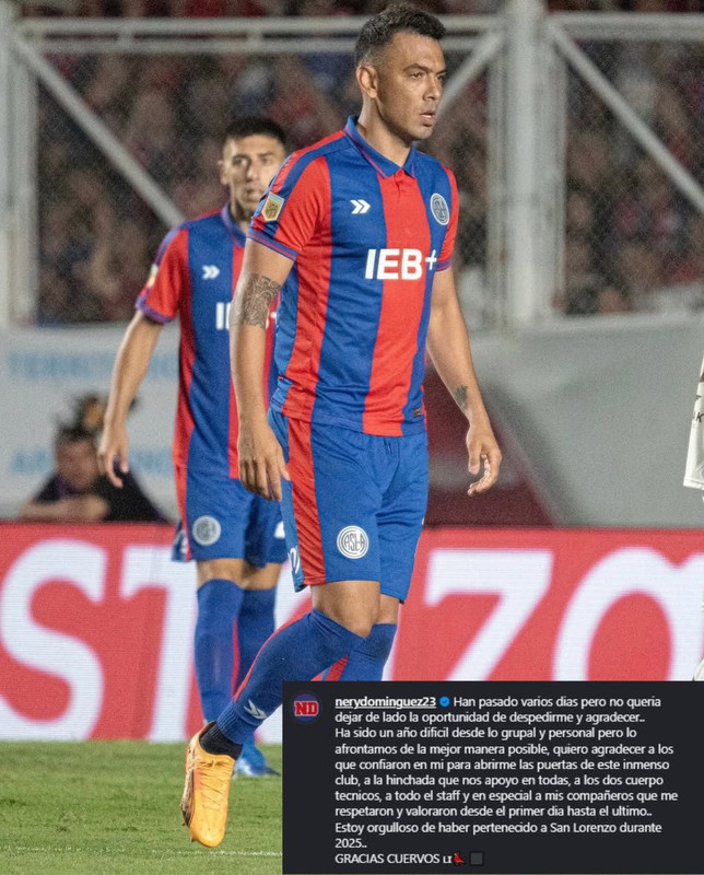 Como cierre, dejó en claro el orgullo que le generó vestir la camiseta azulgrana. “Estoy orgulloso de haber pertenecido a San Lorenzo durante 2025. Gracias, cuervos”, concluyó.