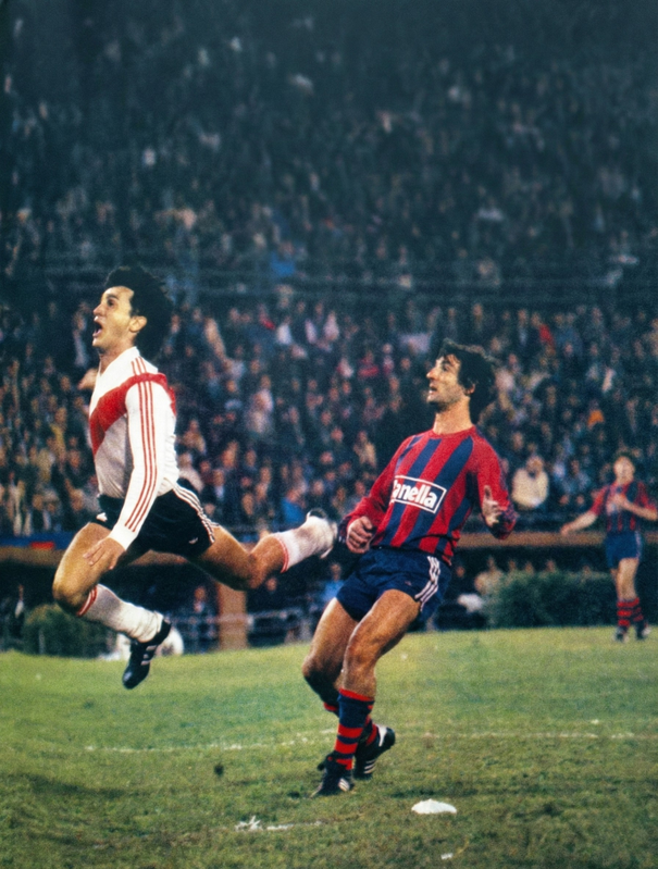 Otro caso emblemático es el de Jorge Rinaldi. La Chancha fue el símbolo del ascenso en el 82 y de los inolvidables Camboyanos. Con 186 partidos y 49 goles en San Lorenzo, es mucho más recordado por nosotros que por sus pasos por la Ribera (50 pj) o Núñez (24 pj), donde no logró el mismo impacto.