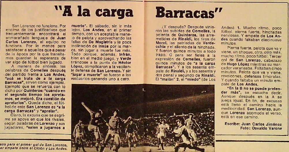 El 10 de abril de 1982, mientras Leopoldo Galtieri arengaba a una multitud desde el balcón de la Casa Rosada con su famoso "si quieren venir, que vengan", San Lorenzo jugaba esa noche en cancha de Independiente ante Los Antes. No fue casualidad: la dictadura le pidió a la Asociación del Fútbol Argentino para que cambie el horario de este encuentro, a fin de no compitiera en convocatoria con el acto oficial. El Ciclón era, en ese momento, el mayor fenómeno de masas del fútbol argentino. Y así fue, esa jornada fue el único partido nocturno de San Lorenzo en su fugaz paso por la Primera B.