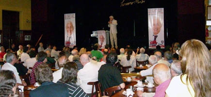Aldrey fue el primero en dirigirse a los presentes: “En la campaña de 2004, cuando yo era candidato a Presidente, también hacíamos desayunos acá, y nunca tuvimos una convocatoria como la de hoy. Por eso no tengo dudas, el 11 de diciembre San Lorenzo va a tener nuevas autoridades y vamos a ser nosotros”.